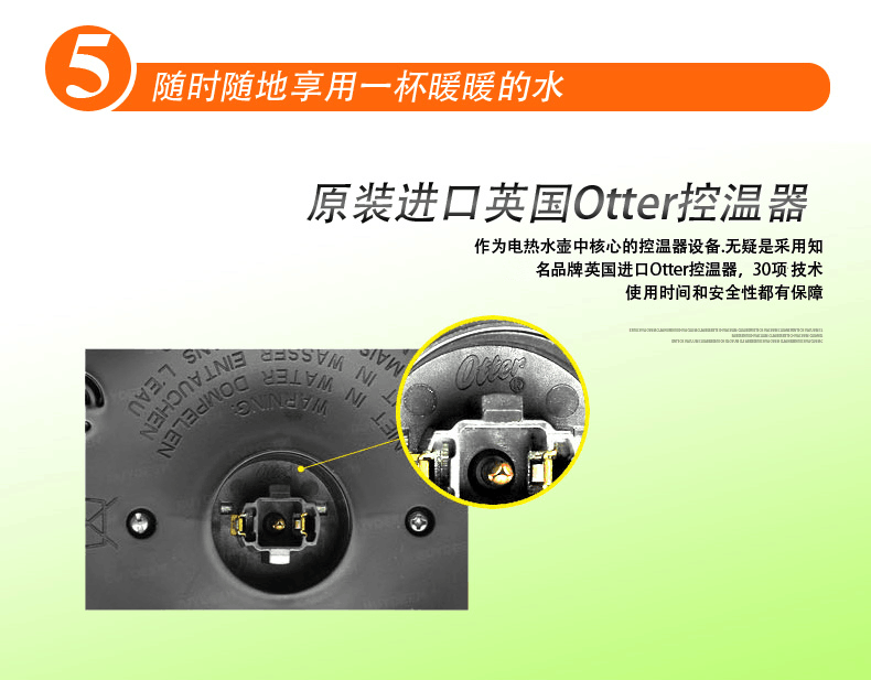 ④英国进口Otter温控器:精准控温,持续100℃沸腾,强效杀菌;