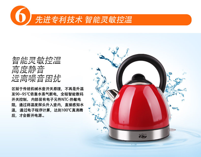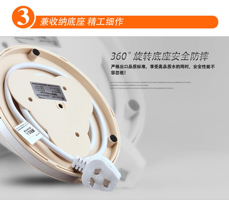 ③3分钟快速沸腾:采用银触点,大功率发热底座,电水壶的“法拉利” ,0到100℃,需3.9′;