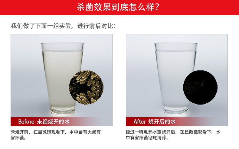 注意:国内低价水壶为保护低价元器件不被烧坏,普遍85度会自动断电,达不到真正的杀菌效果;