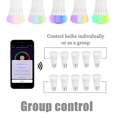 - Convenient to Lighting--Work with Wi-Fi or cellphone traffic, controlled by APP on smart phones (Android 4.1 above or IOS 8.0 above). Work with Amazon Alexa and Google Home and can be voice controlled. You can create groups to control two or more bulbs. To improve home security though remote control.