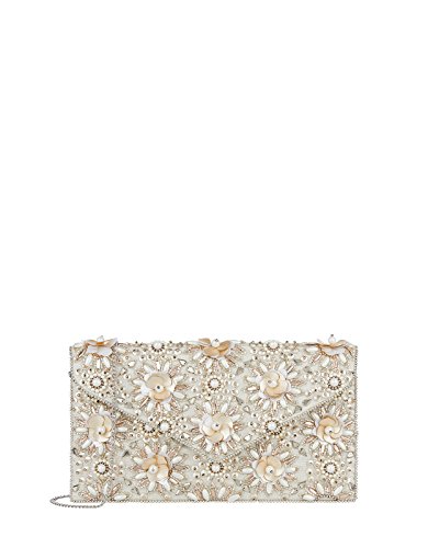 Product Description Add a show-stopping element to your special-occasion outfits with our Alicia envelope clutch bag. Embellished with metallic sequin flowers, beads and faux pearls for maximum wow-factor, this design will have everyone under your spell. It features a magnetic clasp, zip pocket and chain strap. 0