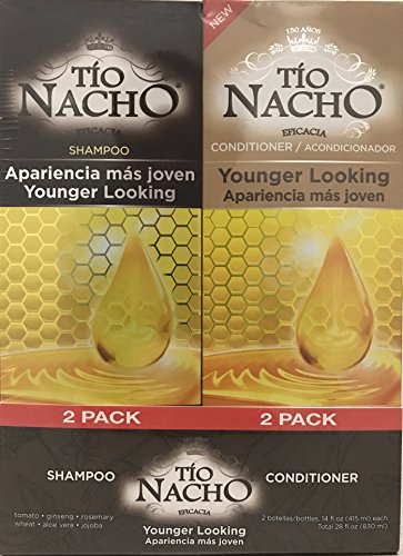 -. Binding : Health and Beauty -. Brand : Tio Nacho -. EAN : 0650240027239 -. Feature : TIO NACHO, the king of royal jelly / An innovative and effective formula to improve the look and feel of hair / Advanced high quality age defying shampoo that can prevent hair loss due to breakage / A complete new range of tío nacho shampoos and conditioners now in a value two pack -. Label : GENOMMA LAB -. Manufacturer : GENOMMA LAB -. Model : 650240027239 -. MPN : 650240027239 -. NumberOfItems : 2 -. PackageQuantity : 1 -. PartNumber : 650240027239 -. ProductGroup : Beauty -. ProductTypeName : BEAUTY -. Publisher : GENOMMA LAB -. Studio : GENOMMA LAB -. Title : TIO NACHO Younger Looking Shampoo Conditioner, Twin Pack (2 Pack, 14 fl. Oz. Each) -. UPC : 650240027239