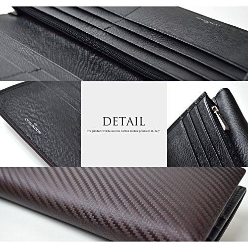 -. Title : 【CORUNDUM】 コランダム イタリア製 カーボンレザー 二つ折り長財布 【ブラウン】