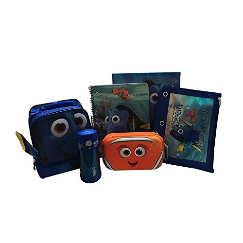 - Full set includes: Dory lunch bag, Nemo pencil case, Blue Funtainer, Dory 3 ring pencil bag, one 3 hole-punched folder, & one spiral notebook