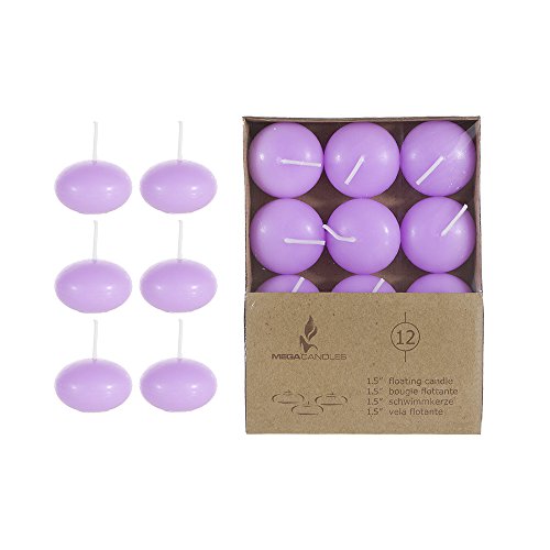 Mega Candles - Unscented 1.5" Floating Disc Candles - Lavender, Set of 12