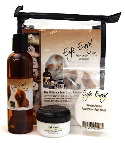 -. Binding : Misc. -. Brand : Eye Envy -. EAN : 0757450330255 -. Feature : Eye Envy pet tear stain remover that you don't need to refrigerate! How great. Features three pieces: a 4oz. solution 1/2 oz powder and Rayon application pads. Eye Envy is the ultimate in tear stain removal systems. Externally applied this safe non-irritating and effective cleanser and beautifier removes unsightly stains and inhibits dark staining production. The Starter Kit includes all the essential products needed for the cleansing and beautification process. Eye Envy may also be / applied to your pet to eradicate most feet and mouth stains as well. When initially removing stains it is strongly recommended to use both solution and powder. Together, you will receive the maximum results. This solution does not require refrigeration. Eye Envy does not contain any bleach peroxide steroids or other harmful agents and is topically applied. Natural supplements for a dog. -. Label : EYE ENVY -. LegalDisclaimer : Keep out of reach of children. Avoid contact with the eyes. -. Manufacturer : EYE ENVY -. MPN : NR Pack - Dog -. PackageQuantity : 1 -. PartNumber : NR Pack - Dog -. ProductGroup : Pet Products -. ProductTypeName : PET_SUPPLIES -. Publisher : EYE ENVY -. Studio : EYE ENVY -. Title : Eye Envy Tear Stain Kit Non-Refrigerated-3PC- -. UPC : 757450330255