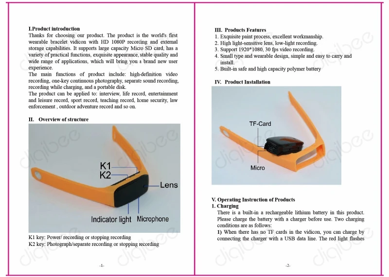 Model Number:Wearable Bracelet Camera Sport DV