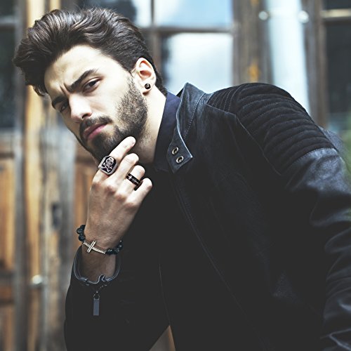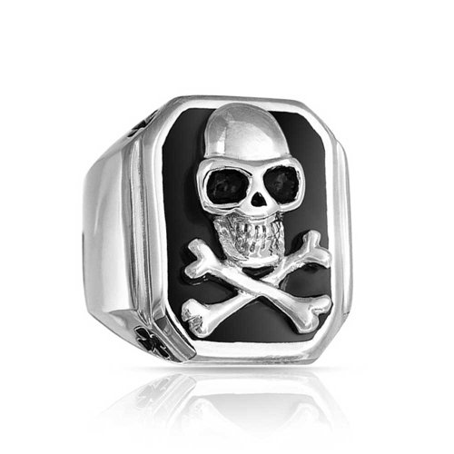 -. Title : Bling Jewelry Black Enamel Mens Skull and Cross Bones Ring Stainless Steel