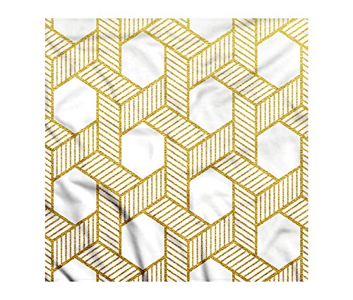 (Ambesonne)/Accessories/Cold Weather Accessories/DIRECT FROM USA/Gold and White Bandana by Ambesonne, Geometric Lines Stripes with Crossing Like Braids Minimali...