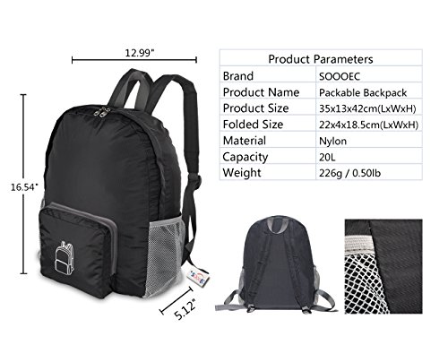 【Ultra Lightweihgt and Packable but Roomy】: The packable Nylon backpack is as light as Iphone 6+, folded size similar to Ipad 3, but with 20L capacity, fold into your carry on handbag and unfold for daily shopping or overload luggage