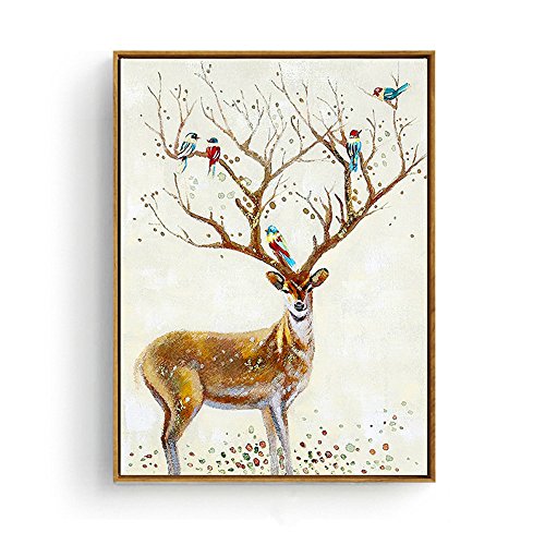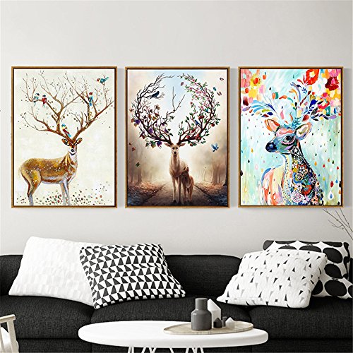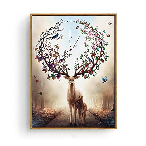 PATTERN : Canvas Wall Art Cute Deers with flowers and birds Painting.