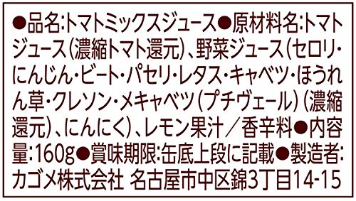 原材料:トマトジュース(濃縮トマト還元)、野菜ジュース(セロリ・にんじん・ビート・パセリ・レタス・キャベツ・ほうれん草・クレソン・メキャベツ(プチヴェール)(濃縮還元)、にんにく)、レモン果汁/香辛料