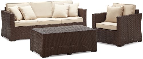 - Feature : All-weather wicker 3-seater sofa great for outdoor use / Woven resin wicker with powder-coated aluminum frame; cushions/pillows in beige 100% polyester fabric / Contemporary style with bold profile; matching Griffen chair and coffee table (sold separately) / No assembly required; spot clean cushions/pillows; cover/store during inclement weather; imported / Measures 32 inches deep by 79 inches wide by 30 inches tall; weighs 56 pounds