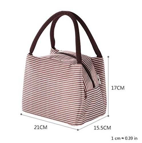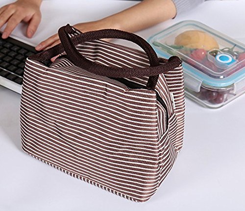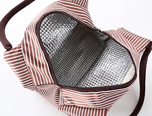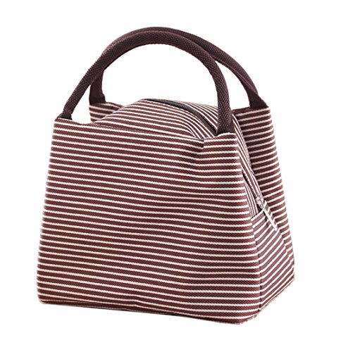 Linshing-Simple Design Heat Preservation Lunch Bag with Zipper for Indoor or Outdoor Stripe Pattern (Brown)