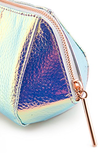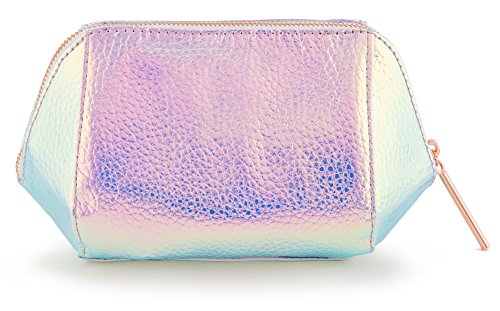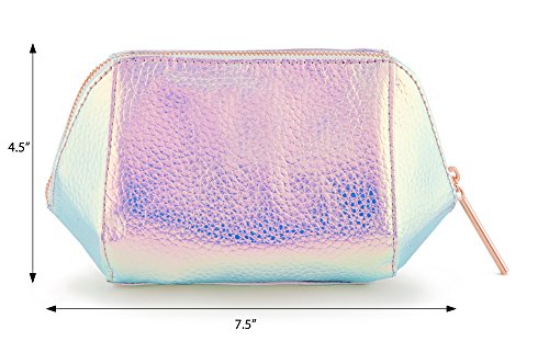 Holographic Cosmetic and Makeup Bag Made of Iridescent Pebbled Faux Leather (JB50)