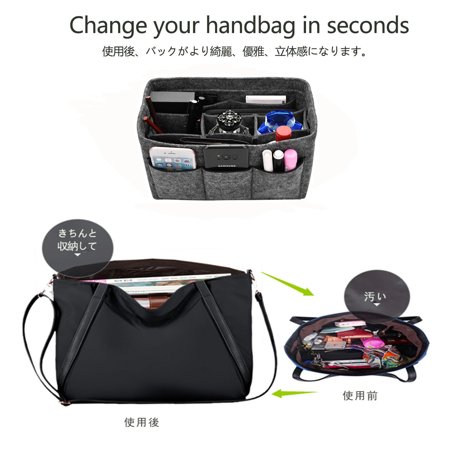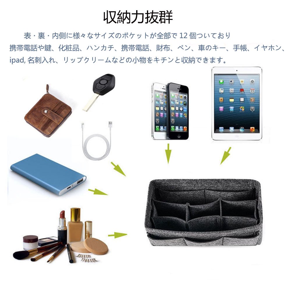 Of course you can organize the contents of the bag by packing small items such as mobile phones, wallets and keys, as well as portable equipment, regular entry, memo pads, glasses, writing instruments, cosmetics and so on.