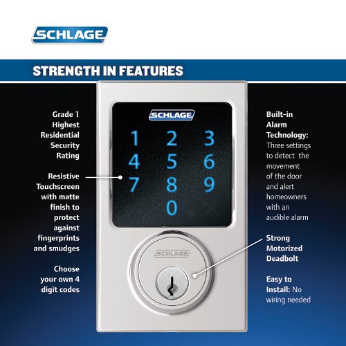 Schlage Z-Wave Connect Century Touchscreen Deadbolt with Built-In Alarm, Works with Amazon Alexa via SmartThings, Wink or Iris, Bright Chrome, BE469 CEN 625