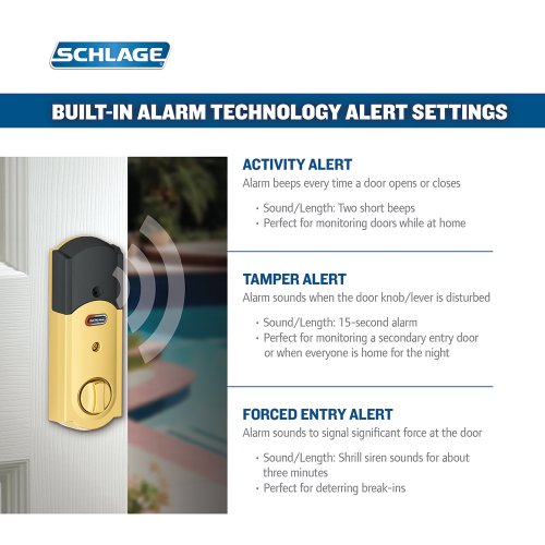 Schlage Z-Wave Connect Camelot Touchscreen Deadbolt with Built-In Alarm, Works with Amazon Alexa via SmartThings, Wink or Iris, Bright Brass, BE469 CAM 605