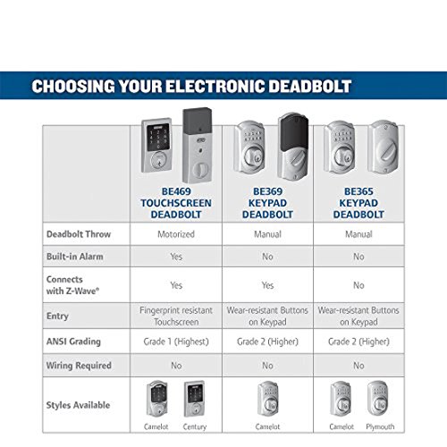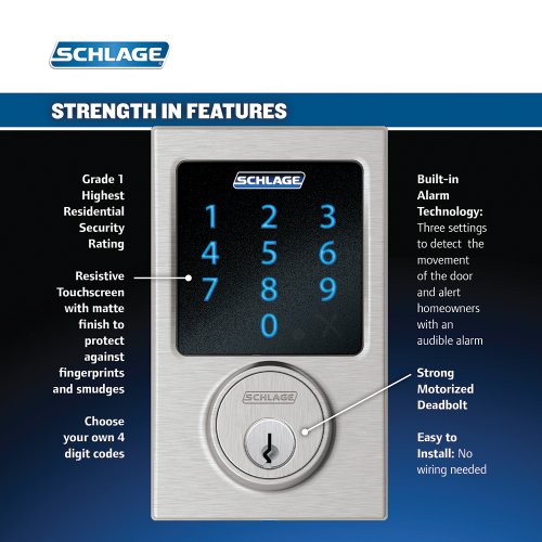 Schlage Z-Wave Connect Century Touchscreen Deadbolt with Built-In Alarm, Works with Amazon Alexa via SmartThings, Wink or Iris, Satin Chrome, BE469 CEN 626