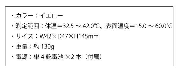 ●測定範囲:体温=32.5~42.0℃、表面温度=15.0~60.0℃