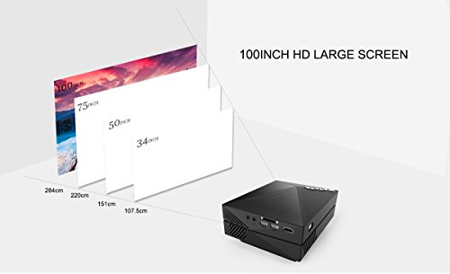 CRYSTAL CLEAR IMAGES - Super Color Technology delivers superior, up to 16700K and 1000:1 richer colors, 1000 lumens LED brightness and 800 x 480p native resolution (support 1080p and 720p), provides crystal clear image in dark environment! Projection Distance is 1.6~4m, and Projection Size is 50~130 inches.