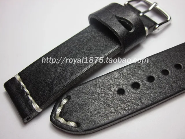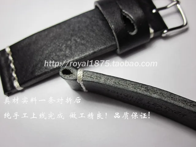 | [해외] 블랙 수제 가죽 스트랩 20 미리메터 송아지 가죽 손목 시계 레트로 거친 미친 남성 팔찌 breitling 빠른 배송 |