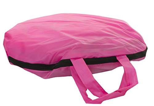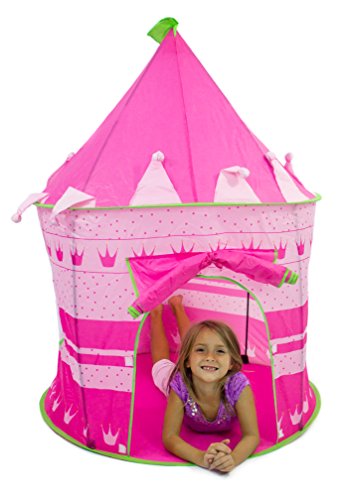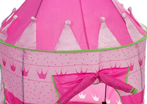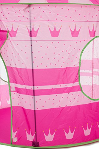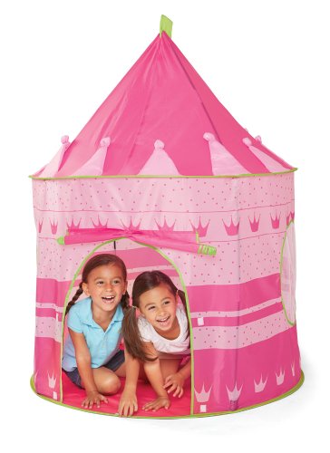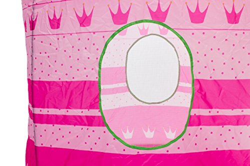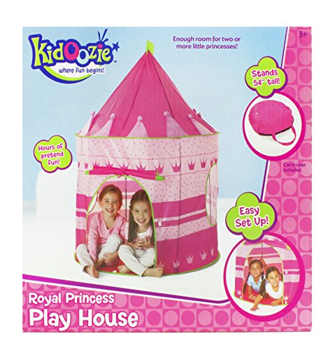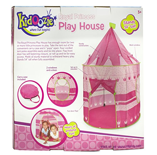 Your little princes and princesses will enjoy hours of fun while playing in the Kidoozie Royal Princess Playhouse. The Kidoozie Royal Princess Playhouse is easy to assemble and big enough to fit two or more little ones. With a front flap door and two mesh windows, the Kidoozie Royal Princess Playhouse is made of durable materials. This exquisite playhouse has no sharp edges, making it safe for everyone. It folds completely flat when not in use and comes with a convenient carry case so you can always take it with you on-the-go. Like all Kidoozie products, this playhouse was built using only safe and top-quality materials that will last your child for years to come. This toy is ideal for broadening mental faculties through creative and active play in young children. The Playhouse is large enough to accommodate 2 or more children. Playhouse measures 54" tall when assembled. Carry case included.Feature