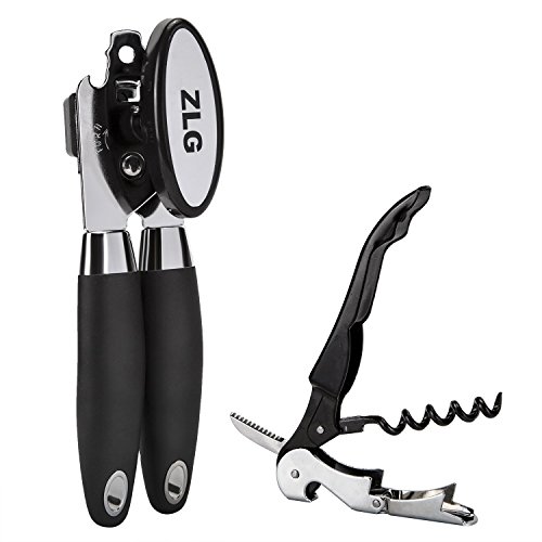 ZLG Stainless Steel Can Opener Manual , with Sharp Cutting Wheel, Smooth Edge,Easy Turn Design and Won't Touch Food,Black