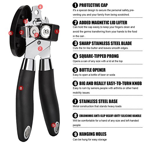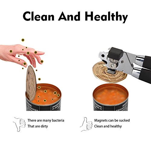 - 3.Clean and healthy: The added magnetic lid lifter can hold the opened can cap easily, to keep your fingers clean and avoid the germs transferring from your hands to the food in the can, guarantee the health of you and your family.