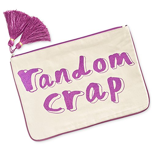 - "Random Crap" is featured on the front; Purple tassels featured on zipper