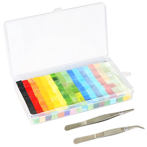 - Package includes: 300 Grams approx.550 pieces of mosaic titles, 1 piece of plastic clear container and 2 pairs of stainless steel tweezers.