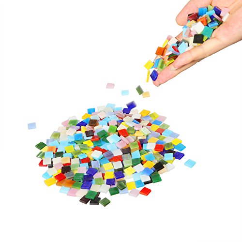 Resinta 300 g/ 550 Pieces Assorted Color Mosaic Tiles Mosaic Stained Glass Pieces with Organizing Boxes and Stainless Steel Tweezers for Home Crafts Decoration, 1 by 1 cm