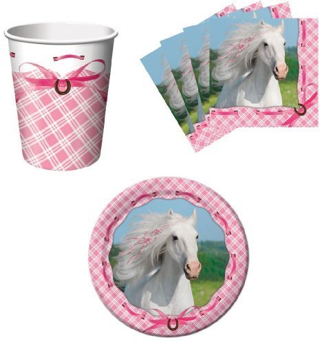 -. Title : Heart My Horse Pink Birthday Party Supplies Set Plates Napkins Cups Kit for 16 by Paper Art