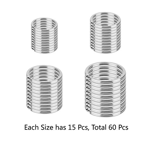 Walue 60 pieces Split Key Rings for Home Car Keys Organization (Four Sizes)