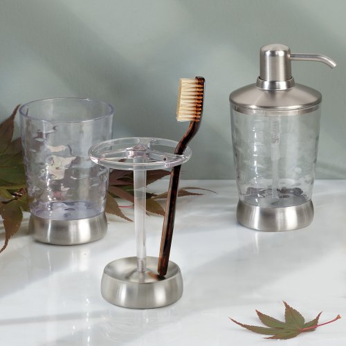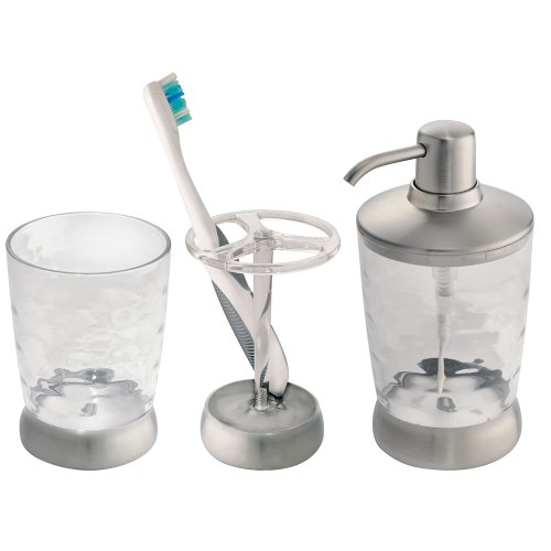 InterDesign Gina Bathroom Vanity Accessory Set, Soap Dispenser Pump, Toothbrush Holder, Tumbler - 3 Pieces, Clear/Brushed
