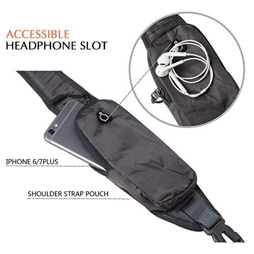 The shoulder strap pouch is 3.54 x 7.48 x 1.57 inches(LxWxH), it holds the iPhone 6 / 7 plus/6S easily with the SBS zipper, do not worry you phone lost.