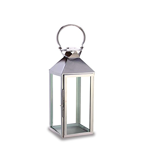 -. Title : Pilgrim Home and Hearth 17532 Reflections Candle Lantern, Polished Nickel / Stainless Steel, 7.5 x 21"
