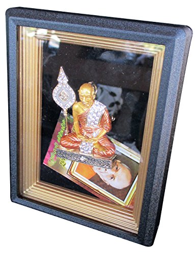 RaanPahMuang Thailand Jeweled Pin Brooch in Display Case Monk with Buddhist Fan