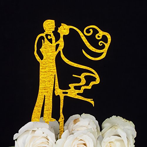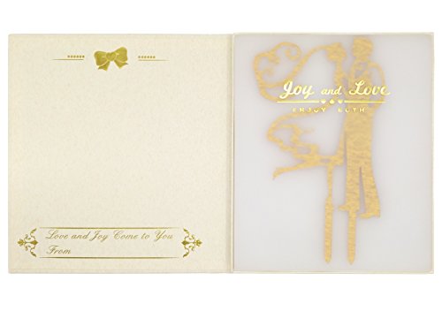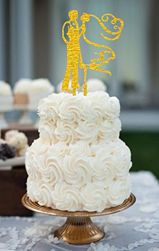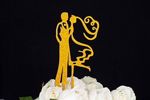 LOVENJOY Gift Box Pack Bride and Groom Silhouette Wedding Anniversary Cake Topper (3.9-inch, Gold Glitter)