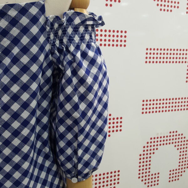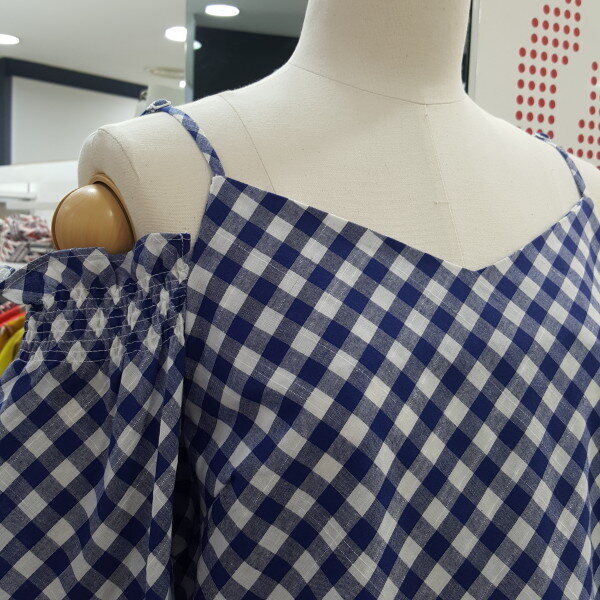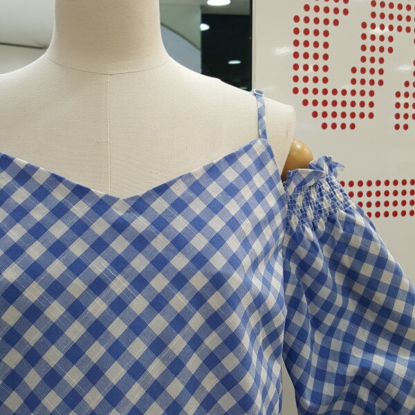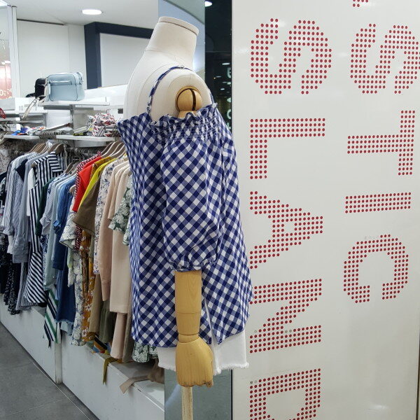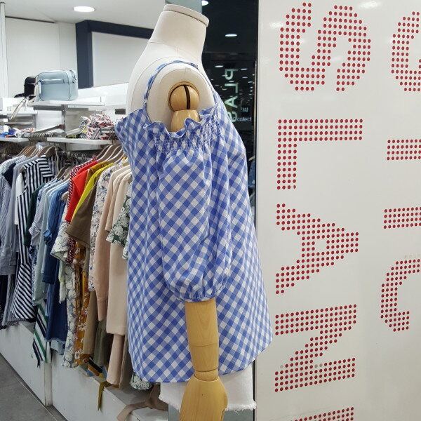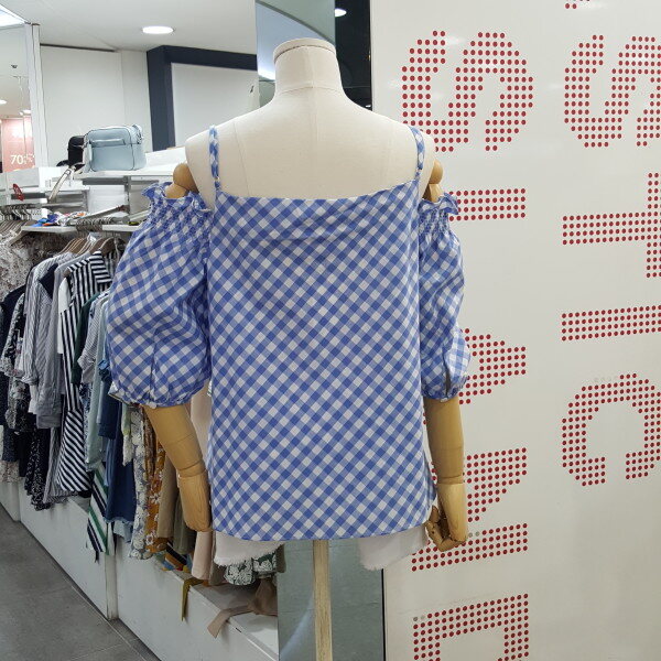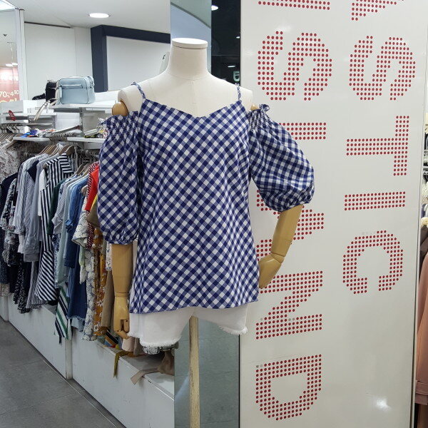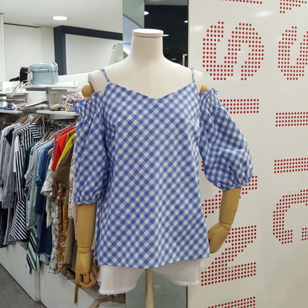시원한 체크블럭 패턴의 오프숄더 블라우스입니다. 어깨끈이 있어 안정감있으며 화이트,진소재의 하의와 너무 잘 어우러지는 아이템입니다. 총장 60cm