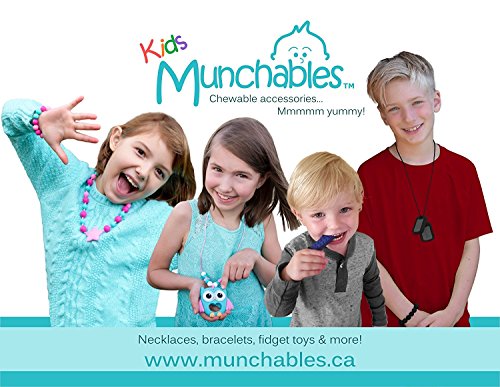 Studio : Munchables Publisher : Munchables Binding : Health and Beauty Product Description What can Munchables offer my child? Munchables kids' products are perfect not only as fashion accessories, but also for children that chew. Our sensory chewelry provides a safe alternative to chewing on collars, cuffs, fingers. Redirecting chewing to a safer option can increase focus and confidence. We offer necklaces, bracelets, pencil toppers and a wide range of non-chewable sensory fidgets. Will it work for my child? We have had over 1000 reviews left over the past four years. Numerous parents have found that Munchables are able to help their kids. "It is stylish so nobody notices that it serves another purpose. This style has increased her confidence being in public. Her sister even wants to borrow it as it doesn't appear to be a tool to aid in her anxiety and chewing habits. Thanks for this style. We have only had [it] for a few weeks now but she is so happy!" Randi, Alberta (June 2016) What if my child doesn't' like their Munchable? We offer a 100% Satisfaction Guarantee - Love it or get your money back! It's that simple. What style should I buy? Every child will get a different amount of wear from their Munchable. Mild chewers may never need to worry about replacing their chewelry, while extremely aggressive chewers may be able to destroy their items within days. The style of each item influences their durability. For aggressive chewers, styles such as the Soccer Ball, Little Bird or Yummy Gummy Pendants are highly recommended. What are Munchables made of? Every Munchable is made of 100% safe silicone; this means that that the products do not contain dangerous additives, such as BPA, lead and phthalates. When will my order arrive? Orders are sent from Vancouver Island in Western Canada via USPS. Most orders arrive within 3-8 business days. 0