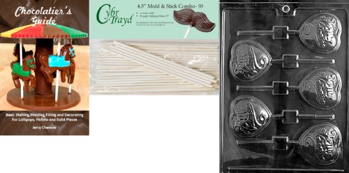 Cybrtrayd 45St50Bk-V035 'Be My Valentine Lolly' Valentine Chocolate Candy Mold with 50 4.5-Inch Lollipop Sticks and Chocolatier's Guide