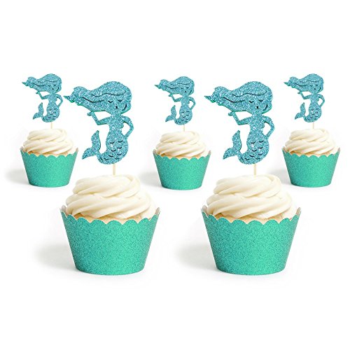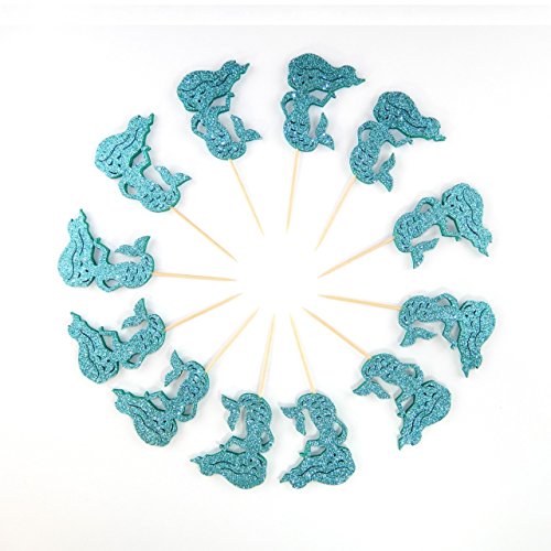 Mermaid Little mermaid Cupcake Topper 12 Pack Cupcake Topper Decoration Cake Glitter Foamy Teal