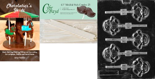 Cybrtrayd 'Chocolate Kid Boy Lolly' Kids Chocolate Candy Mold with 25 4.5-Inch Lollipop Sticks and Chocolatier's Guide