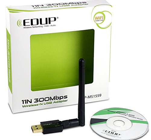 -. Binding : Electronics -. Brand : EDUP -. Color : Black -. EAN : 0700161314052 -. Feature : Simple install .The wifi dongle works perfectly with any 2.4Ghz wireless b/g/n routers / Data rates: up to 300Mbps,the wifi dongle guarantees a reliable and safe protection USB2.0 interface / High-Strength Antenna for Strongest Signal - up to 300 meters! And the wifi dongle Signal transmission distance of more than 100 meters / Works with all Windows Operating Systems (Windows XP/ Vista/ 7/ 8/ 8.1/ 10,MAC/ raspberry pi); Security: Supports 64/128-bit WEP, complies with 128 bit WPA standard(TKIP/AES), supports MIC, IV Expansion, Shared Key Authentication, IEEE 802.1X Installation CD Included / Backs up LIFETIME Warranty.You Will Get a New One If You're not Satisfied -. HardwarePlatform : Mac -. Label : EDUP -. Manufacturer : EDUP -. Model : BC21186 -. MPN : BC21186 -. OperatingSystem : Windows XP -. PackageQuantity : 1 -. PartNumber : BC21186 -. ProductGroup : PC Accessory -. ProductTypeName : COMPUTER_COMPONENT -. Publisher : EDUP -. Studio : EDUP -. Title : Wifi Adapter 300Mbps Wifi Dongle 2.4GHz Wireless USB Adapter with High Gain Antenna -. UPC : 700161314052