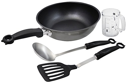 블랙-【수량 한정4점 세트】IH 볶음과 24cm 계량