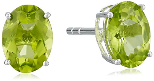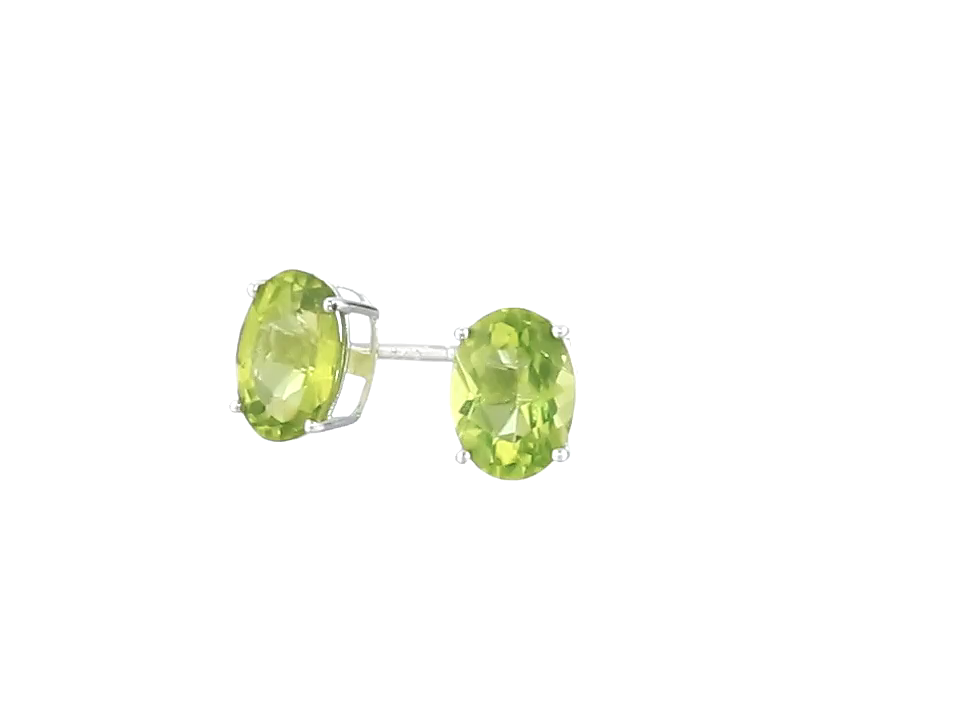 Sterling Silver Peridot 8X6 Oval Stud Earrings