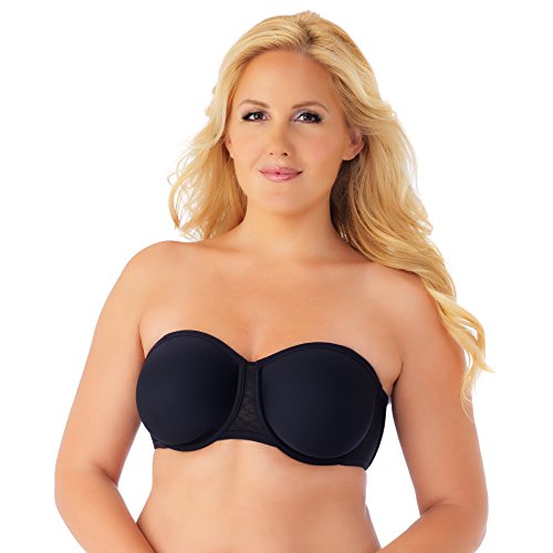 Innovative silicone application on back, elastic, and wire channel keep this unlined full figure strapless bra in place all day giving weightless support.