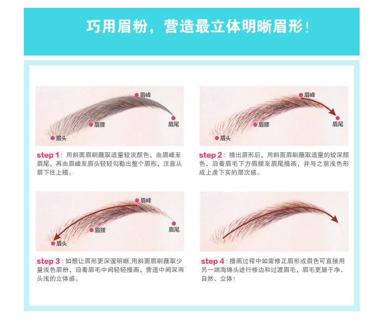 非常好用的一款多用途宝贝哦 这款眉粉不但可以画眉毛 还可以做眼线,眼影,画烟熏妆,打阴影都可以 。用途超多的,价格又实惠,