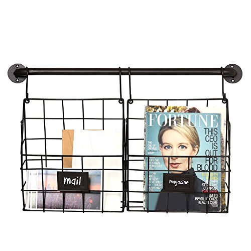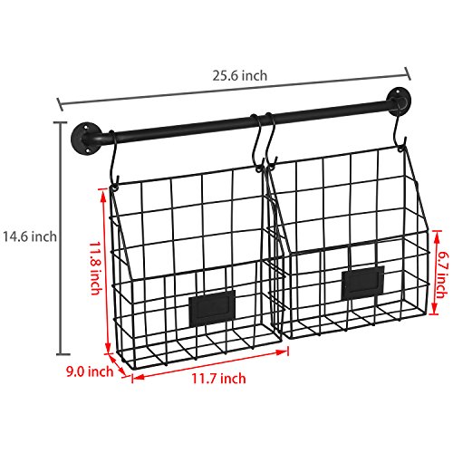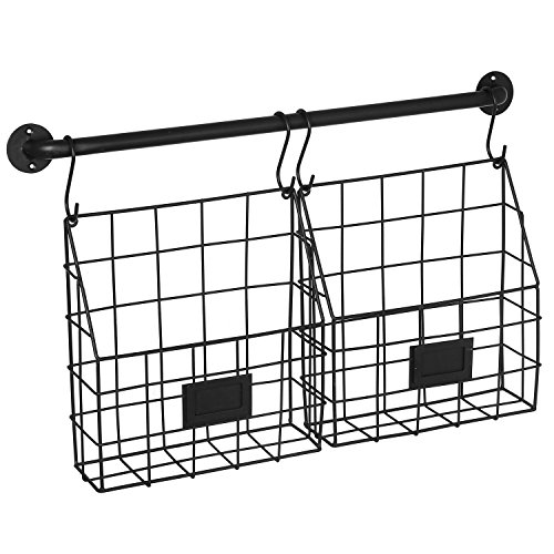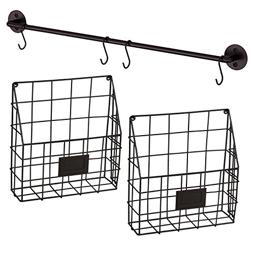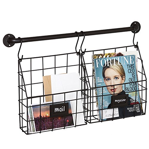 Set of 2 Metal Wire Hanging Magazine & File Organizer Rack w/ Wall Mounted Hanger Bar & 4 S-Hooks, Brown